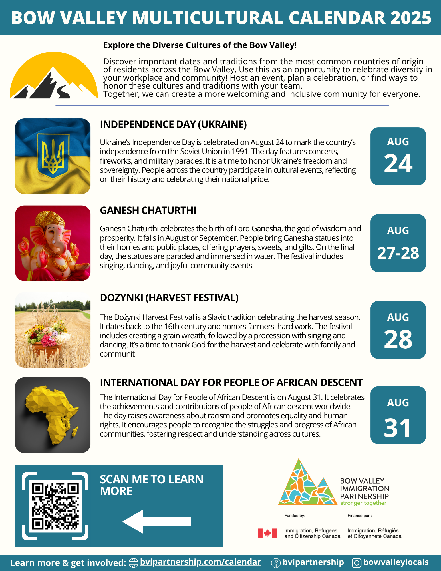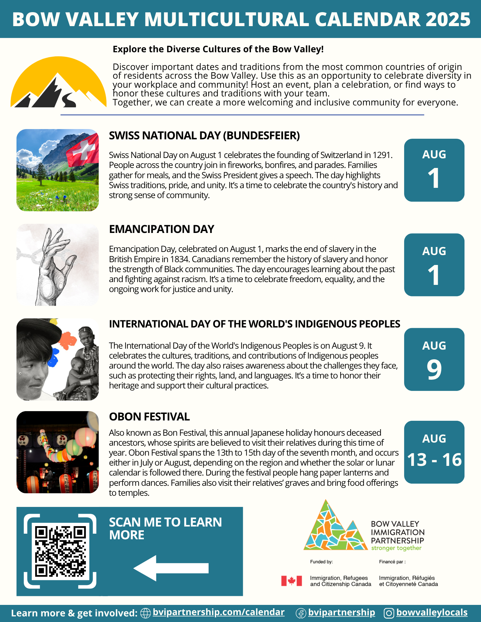 Share this calendar with your friends and co-workers and join the Bow Valley Immigration Partnership (BVIP) in building a more welcoming and inclusive Bow Valley for all.